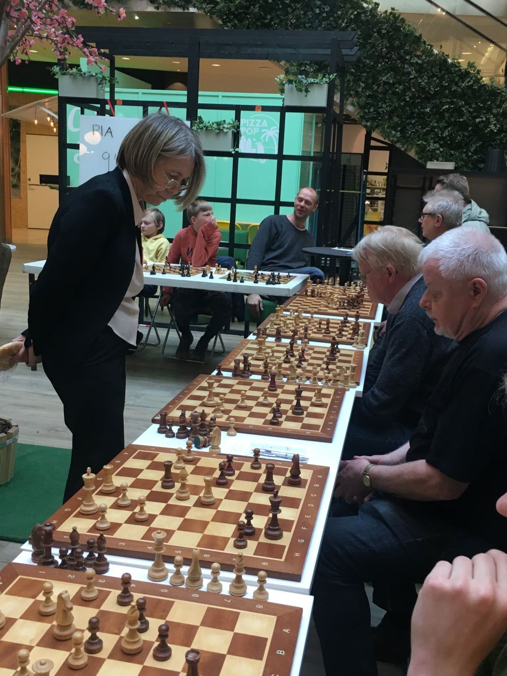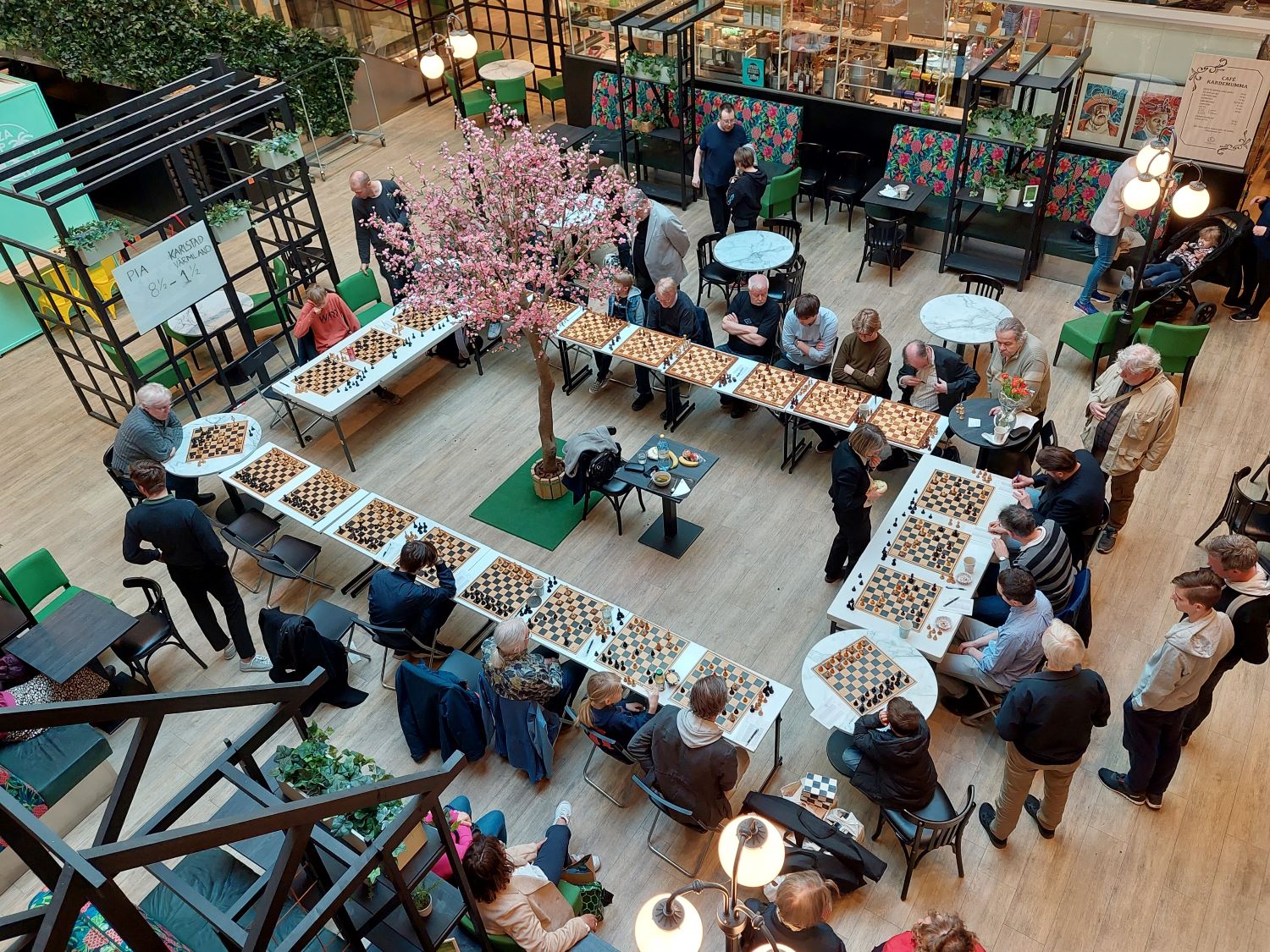 Det blev ett kul och välbesökt event när stormästare Pia Cramling under lördagen gav en simultan i Mitticity, Karlstad. Hon spelade i början av dagen simultan på 24 bord, och totalt spelades 27 partier. Det blev en lite förvånande start då hon tidigt förlorade ett av partierna vilket fick resultattavlan att visa 1-1. Det verkade däremot gå snabbt för Pia att återhämta sig och visa att det var en engångsföreteelse. I slutet av dagen stod det klart att hon vunnit överlägset med siffrorna 24.5-2.5. Endast tre av partierna slutade med remi.
