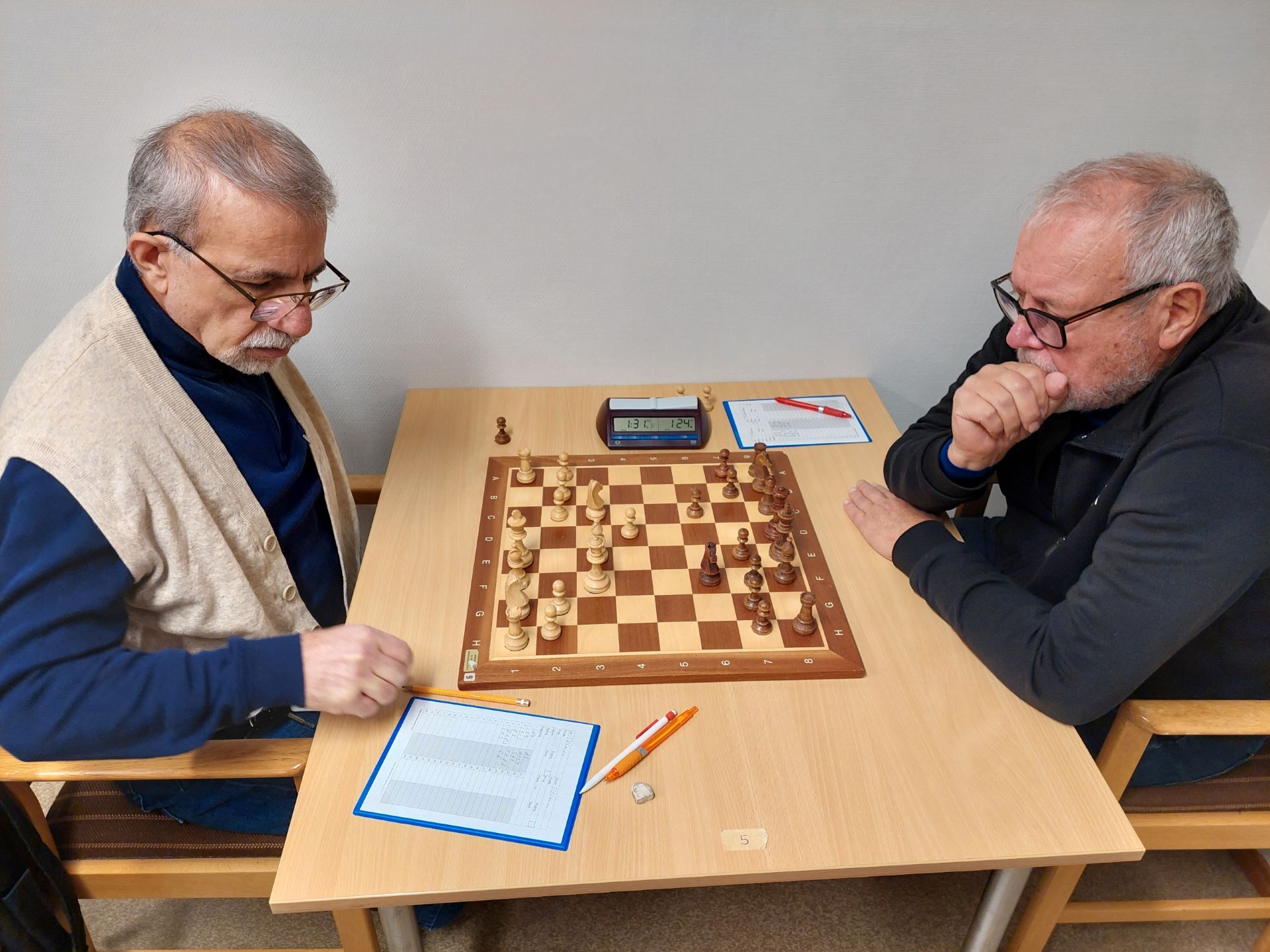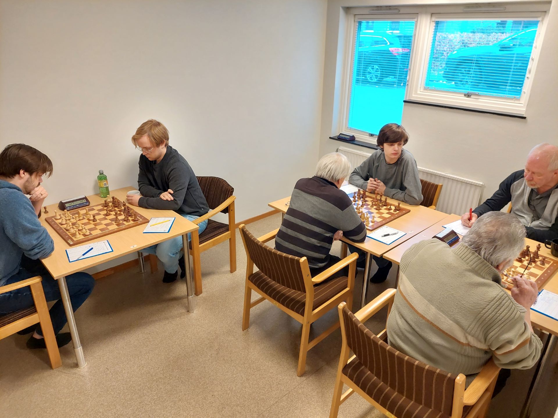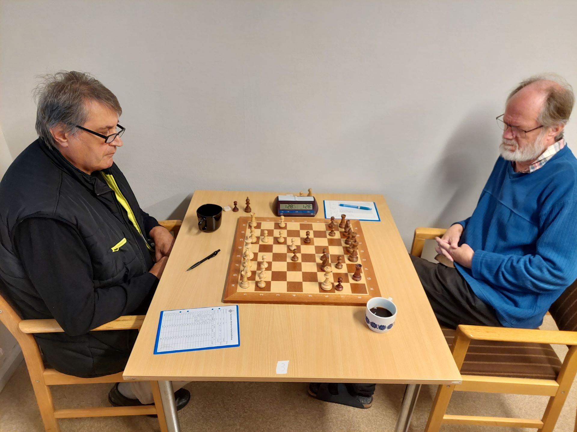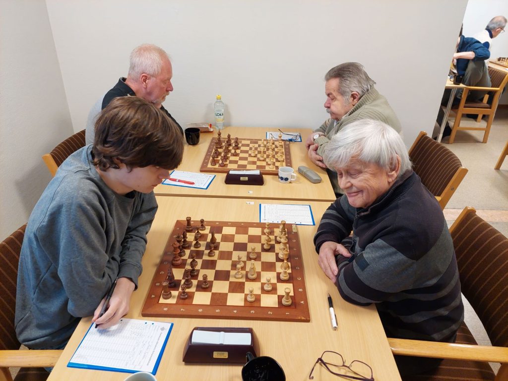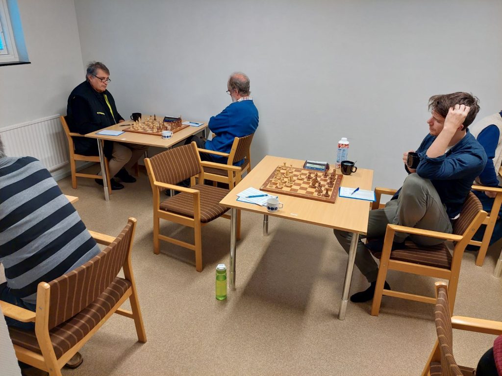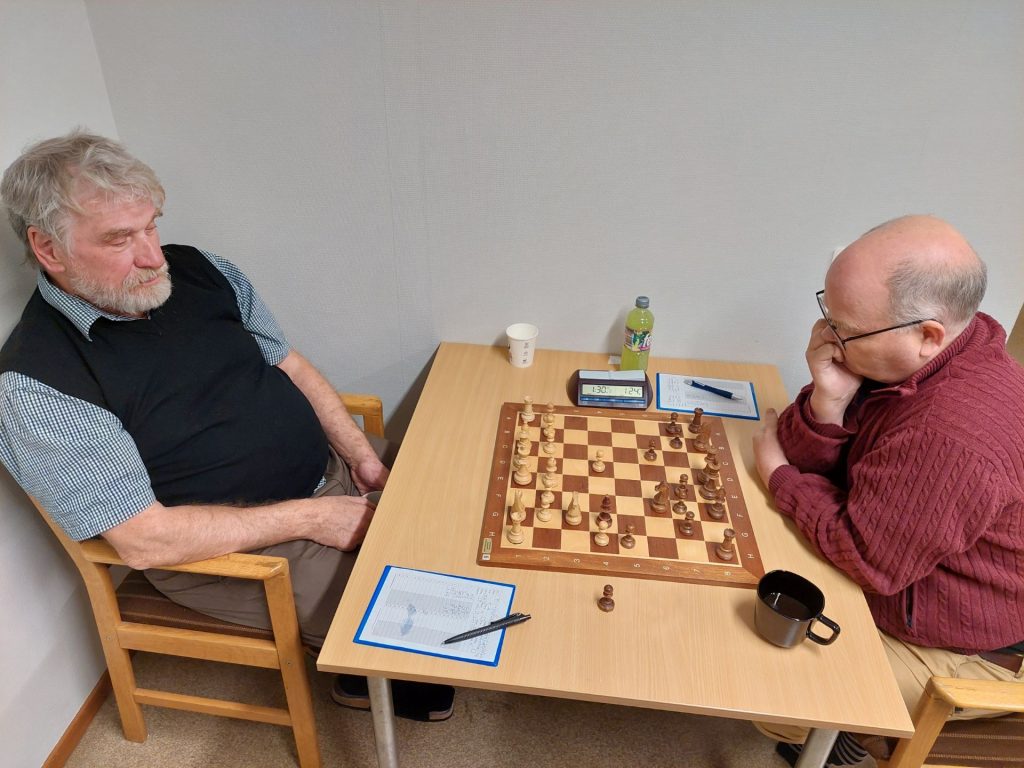 På bord 2 spelade undertecknad vit mot Julius Schwartz och fick en sicilianare mot mig. Efter både positionellt och taktiskt spel slutade det remi. Närmast segern låg nog Julius, gissningsvis 52-48.