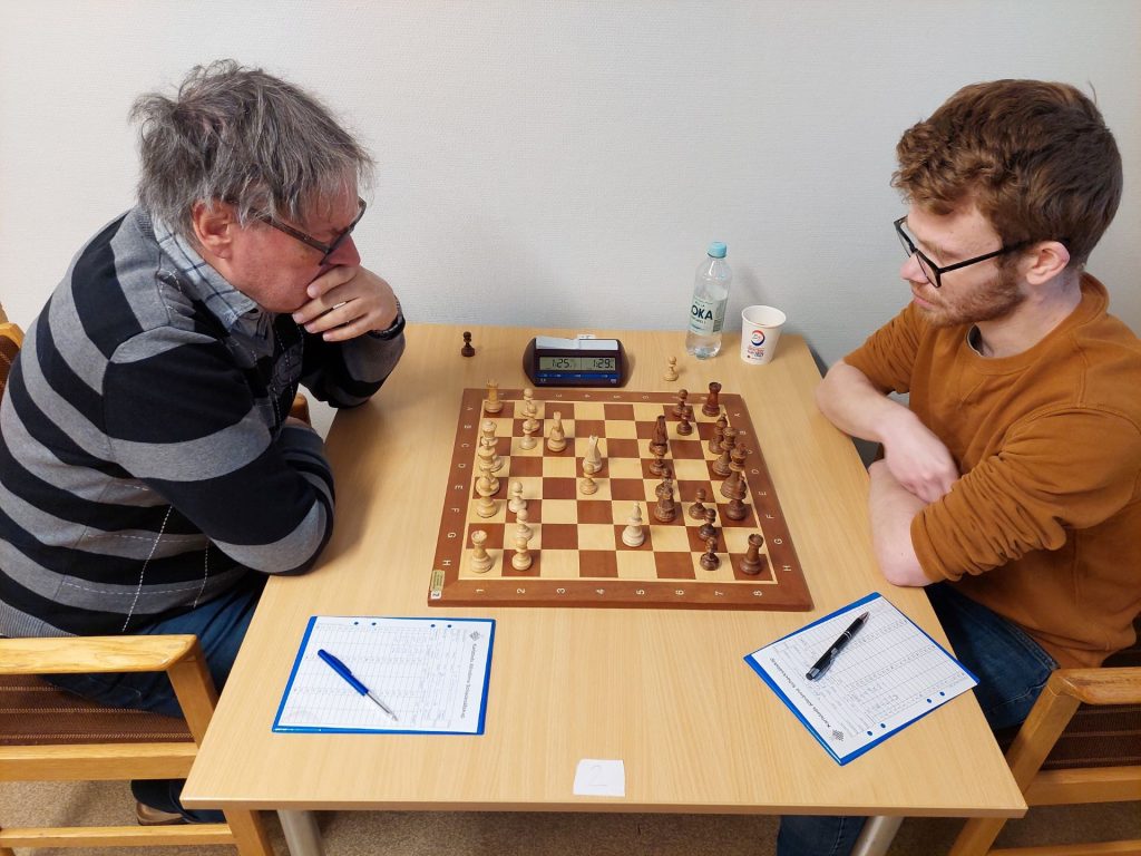 På bord 1 kämpade Henrik Norberg med svart mot Katrineholms Stephane Grun. En bondeförlust för Henrik gav dock motspel och Stephane fick till slut nöja sig med remi.