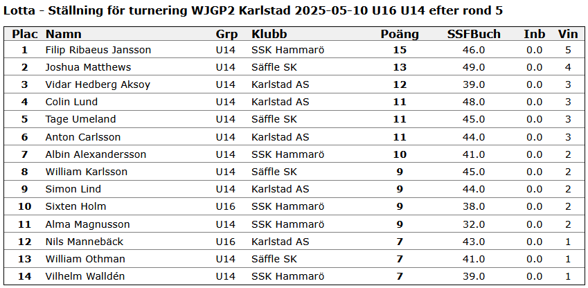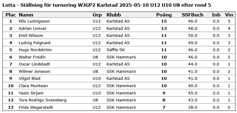 WJGP2 Karlstad resultat