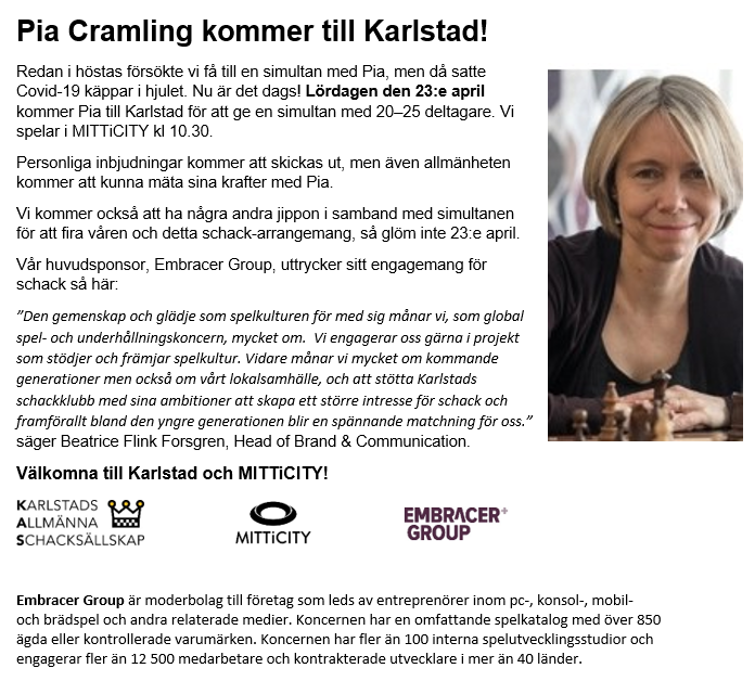 Han kommer att förevisa några av sina partier. En underhållande och intressant schackkväll utlovas!